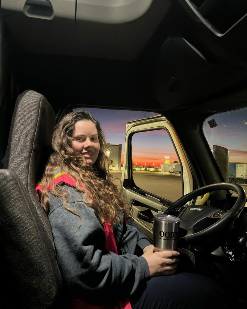 Upon returning from that trip in 2020, the pandemic halted the world but put trucks in motion. She noticed something important at the coffee warehouse: “I never saw a woman… how hard can it be to drive a truck?” Seeing the void, she decided to get her CDL (Commercial Driver’s License) and become a trucker.